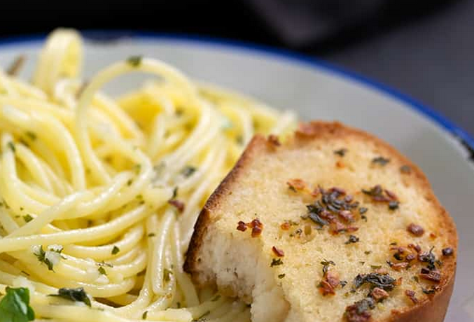 Najboljši način za izdelavo česnovega kruha je, da ga potopimo v maslo prepojeno z česnom in olivnim oljem. Potem istisnete višek in pečete do popolnosti.