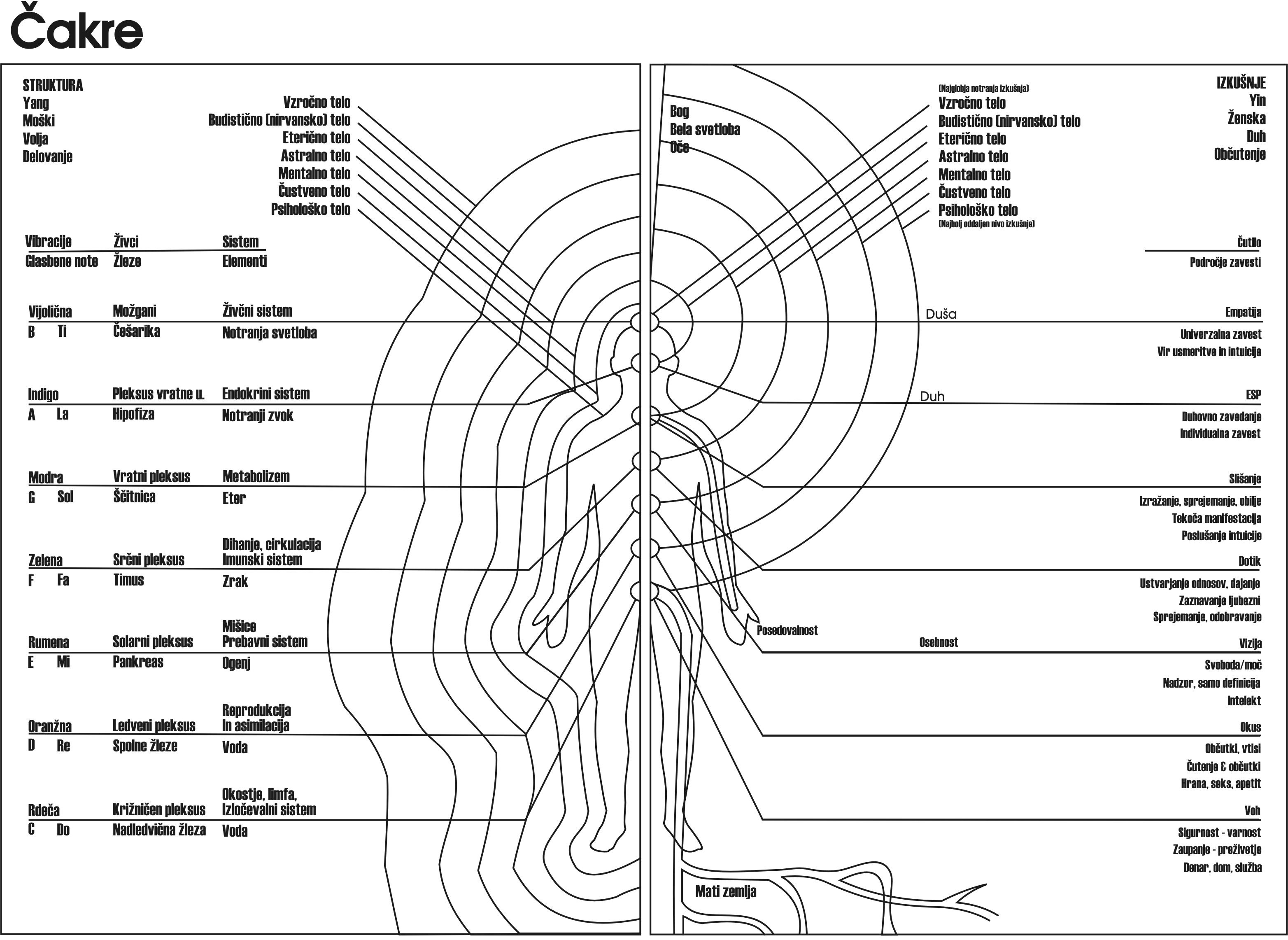 V nadaljevanju je prikazan sistematični prikaz zrcalnega sistema energetskega telesa glede na strukturo in na posamezna energetska telesa. Shema se prikaže v pomanjšani obliki. Če jo naložite na vaš računalnik in jo natisnete se natisne v A4 formatu.